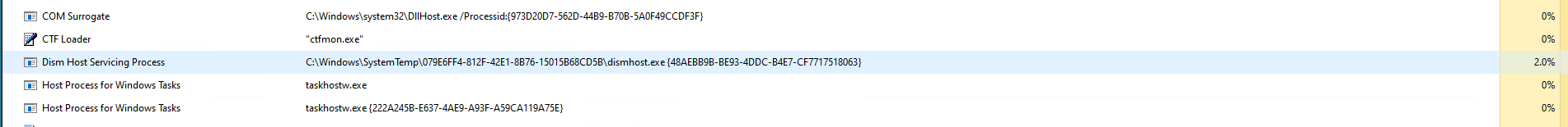 Various instances of dism will also run during the process: